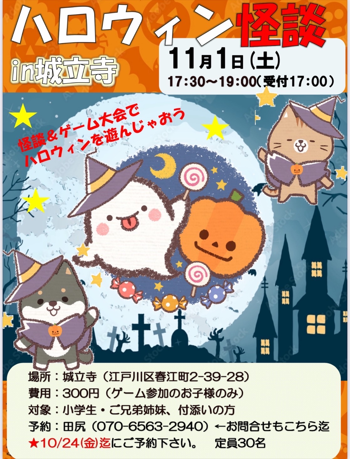 11月1日(土)17:30〜 本堂にて「ハロウィン怪談」開催します。